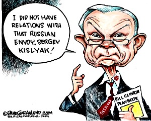 How can our country based on laws abide Jefferson (Jeff) Beauregard Sessions as U.S. Attorney General who is head of the Department of Justice and the chief law enforcement officer of the federal government? A man that blatantly perjured himself by lying to an investigating commission. When asked if had met with any Russians he answered that he had not and later admitted to meeting twice with Russian ambassador Sergey Kislyak.
